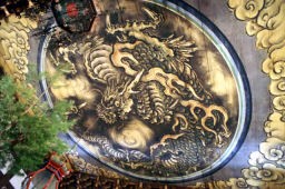 その後天龍寺の庭園を観たあと、嵐山電鉄に数駅乗って妙心寺前駅で下車。電車始発駅には足湯もあり、また車内はワンマンの運転手兼車掌兼駅員の方が乗って乗客対応の業務をし、お客様もせかず慌てず、とてものどかだ。ここは禅宗臨済宗の総本山妙心寺である。おなかも空きかけていたが、広い境内をぐるりと一巡してきた。妙心寺では、有名な狩野探幽作の「天竜の天井画」を見てきた。凄い大作である。