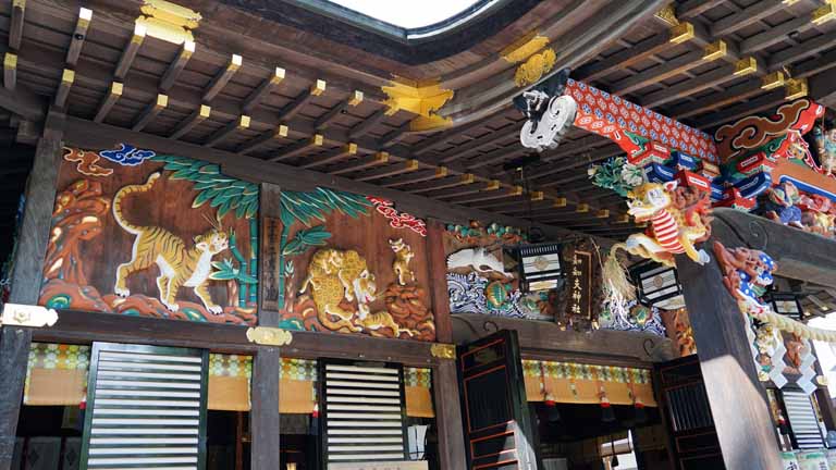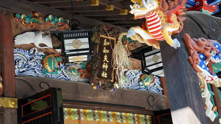 12時20分にバスは出発して秩父神社に向う。以前秩父夜祭の時に訪れたが本殿付近はごった返していて良く見れなかったが元気なお猿さんなどの本殿周囲の彫刻をゆっくりと見させてもらった。「北辰の梟」「お元気三猿」「つなぎの龍」「子宝子育ての虎」は左甚五郎作か。