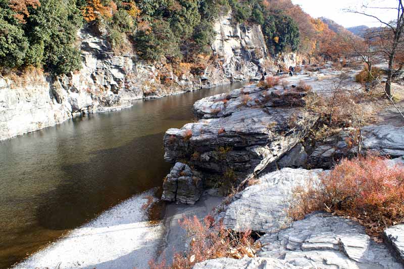 その後長瀞に行って岩畳近辺の河原を1時間程散策。添乗員から当地は日本のエアーズロックと謂われており云々と聞き楽しみにしていたがついてみると似てもいないし、全く似てもいず非なる物だったので少々落胆。今日は長瀞経由で秩父夜祭の方々が圧倒的に多く凄い混雑ぶり。土産物屋駐車場に着くまでが一苦労で慌ただしくバスを降りるとバスはその場に停車できず1時間ほど外回りを余儀なくされるそうだ。