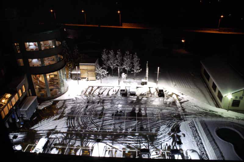 2日目の朝、また温泉に入ろうと午前7時30分に起床したところ、外は粉雪。よしっと思いつき、目指すは新館3階全フロアが男性専用の温泉へ直行。露天風呂に入り、優しく落ち行くDachs飼主初雪を頭に受けながら体の芯から暖まる贅沢な入浴を愉しむことができた。