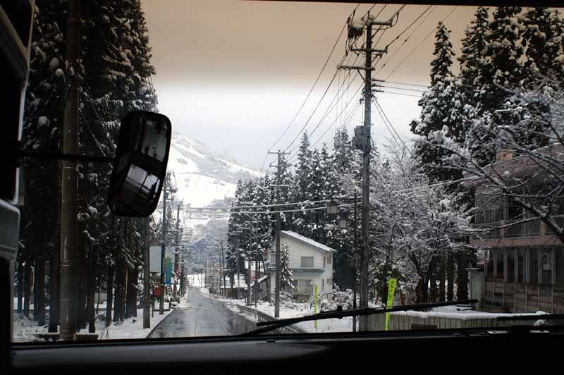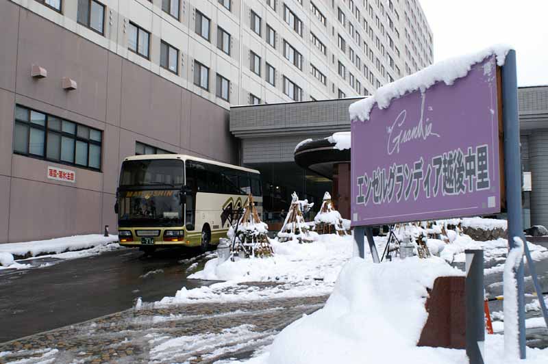 朝食はバイキング形式で美味しい味噌汁とごはんに出あえ、出発時間までホテル近辺を雪を踏みしめながら夫婦で散策。