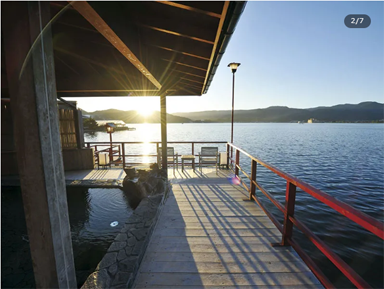 =●●●温泉泊(早めの15:30頃)日本で唯一の〇〇(湖上?)露天風呂がある当社最上級Sランクホテル・5つ星の宿にご宿泊(望湖楼?)<泊>