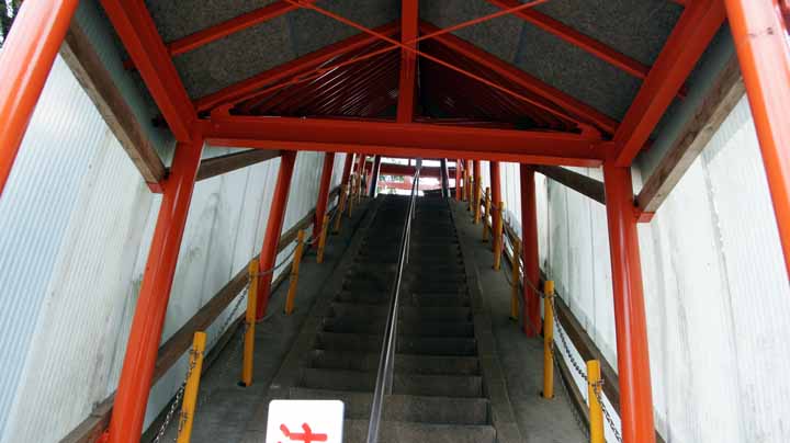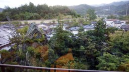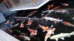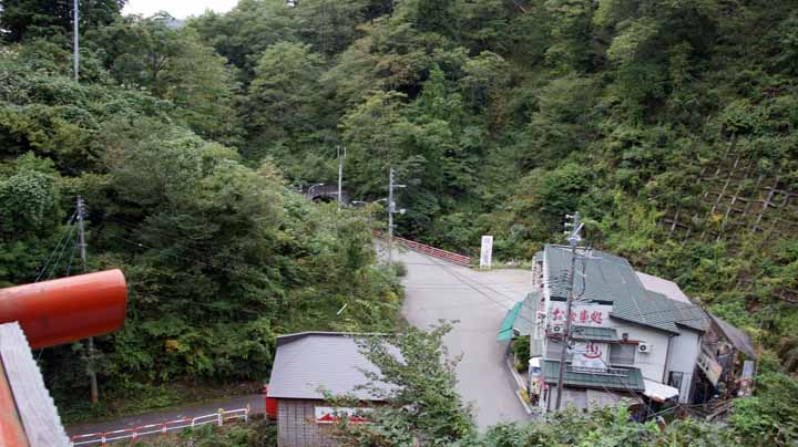 食後、出発まで40分ばかりあったので、バイキングの後は一人ハイキングに出かけた。旅館のサンダルをひっかけて橋を渡って左坂上800m程先の高龍神社を目指す。急な長い階段が2本程(合計118段)あって昇り降りに少々疲れた。ので、帰りは途中までエレベーターを使って横着してしまった。近くには錦鯉の養や闘牛(牛の角突き)で有名な山古志村(現長岡市)があり、旅館の前庭にも大きなにしき鯉が放たれていた。