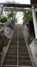 商売繁盛の神様として著名で、太田川の上流で三方を山に囲まれた美しい地に建ち、神秘的なムードが漂っています。ここに来て、まず圧倒されるのが118段の石段。長岡市蓬平町1284