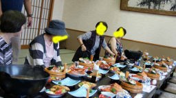 温泉にゆっくりと浸かったあと、午後6時から宴会。途中カラオケで楽しんだり、昨日のエンタティナーからミニ手品修正版と素晴らしいサキソフォーン演奏を拝聴した。腹から空気を吹き出す力強さは我々高齢者に元気を与えてくれる。dachs飼主もデュエット含め3曲歌わせてもらった。