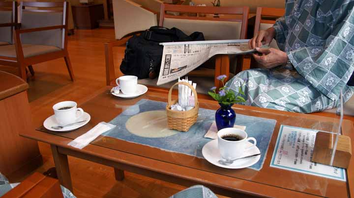 朝6時前に目覚め、部屋仲間2人と連れだって温泉に浸かりに降りる。風の湯、星・月の湯など露天風呂とセットになった湯は今日もすばらしい。肌がすべすべになったと高齢の私たちにまで思わず錯覚させてしまう。