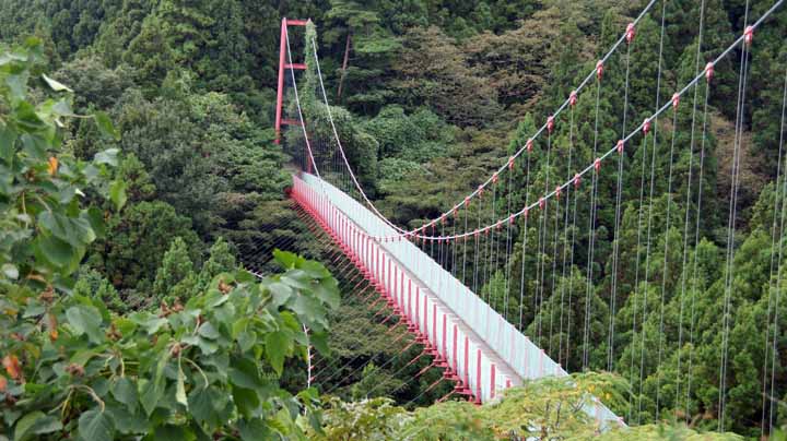 「新潟の橋50選」にも選ばれている、長さ124m、幅1.5mの赤い吊り橋で歩道部から谷底までは35mの高さがある。平成3年3月に事業費1億300万円で竣工。