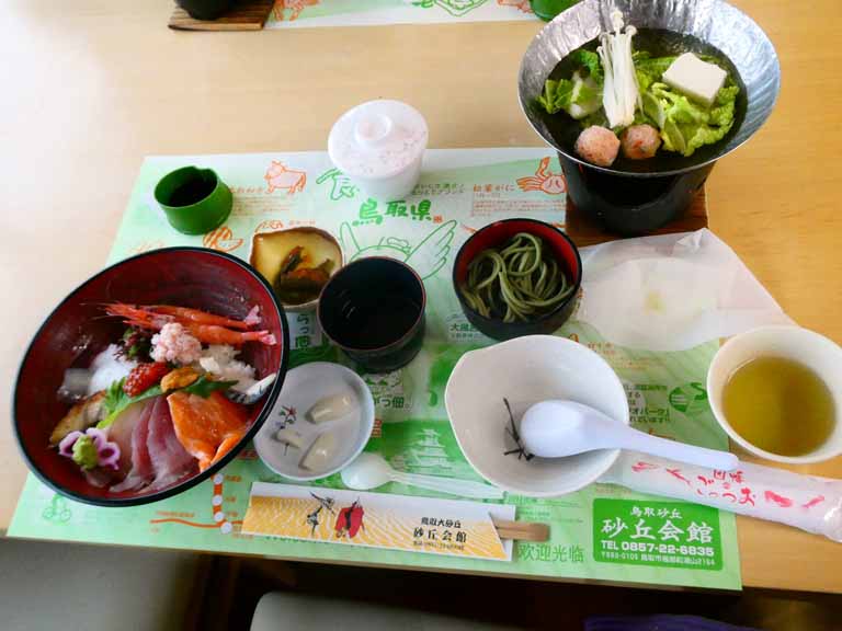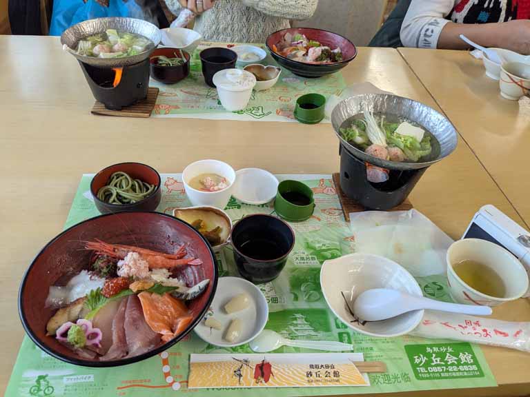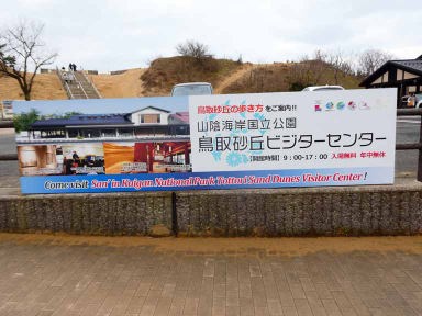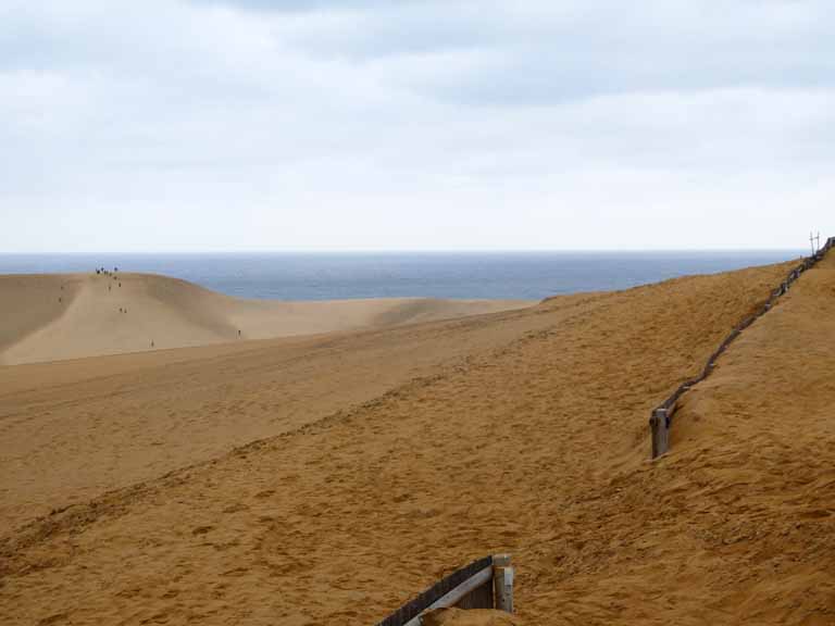 お昼は鳥取砂丘会館。ここでは3年前夕食を食べてからホテルニューオオタニ鳥取だったが今日は昼ごはんに砂丘会館で、夕食ははわい温泉望湖楼の会席料理の筈だ。砂丘の木製階段を上がったら、強風でカメラを持つ手指も悴む程に冷たい。ここから馬の背往復には45分かかるし、新しい靴を買ったばかりなので砂が入らない靴カバー(袋)も200円するし。。。