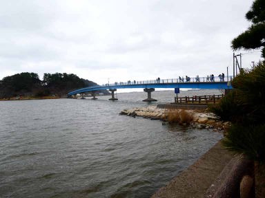 13時30分に出発し、20分ほどで湖山池公園に向う。今日は強風だけでなく、ちょこちょこ小雨だが、散歩中も雨によくかかる。青島に掛かる湖山池の青い橋を渡ったが池面を渡る風が強く早々とバスに戻って暖かい金の微糖を飲んで手指を温めた。