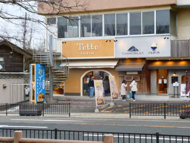 昇り降りを中止して、寒い中だが少し大周りでちょろちょろと散歩してきた。砂丘の新名物「砂プリン」480円を買ってみた。買ったお店はTotto。鳥取砂丘をコンセプトに、通常はプリンの底にある液体のカラメルを、独自に粉末のカラメル(砂と書いてある)をつくり、それをかけて召し上がるプリンは今までにない新感覚のプリン。ジャリっとした食感が癖になるらしい。凄いことを考える人がいるのだと吃驚した。