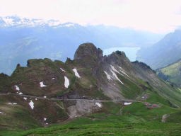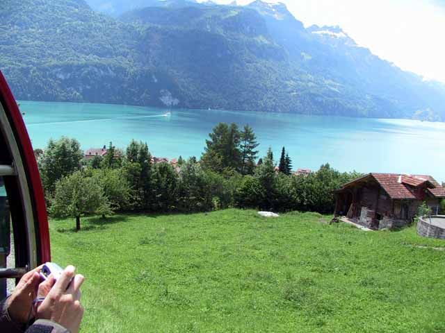 途中ブリエンツ湖がよく見える峠で小休止。スイスの山並みとその下に見下ろせる渓谷や湖が美しく、スイス最初の雄大な景色を全員が大感動。