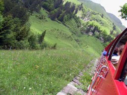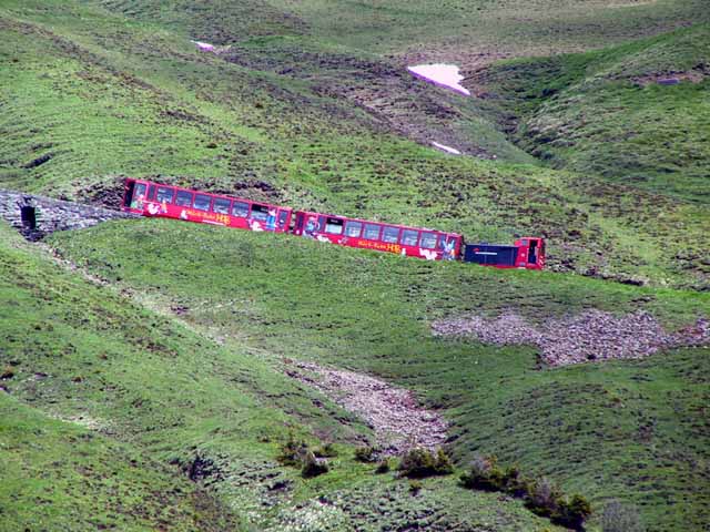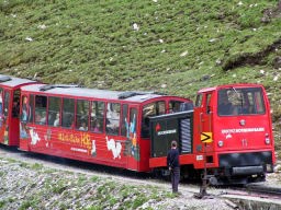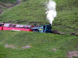 食事後、1:05発の山頂駅行きに乗車。片道1時間のミニSLに乗った旅であるが、左右の車窓に開けるアルプスの山並みは大感動であり、終日シャッターを押し続け、200枚以上を今日だけで撮りきる。替えのバッテリとコンパクトフラッシュ64MBを予備として持ってきていたのが初日早々役に立った。