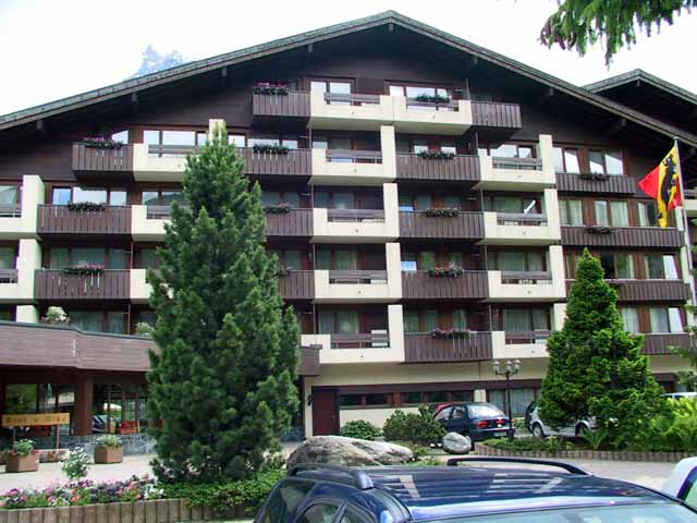 3:45にバスに乗り換え、インターラーケン経由で今夜宿泊のグリンデルワルドのホテルサンスターへ午後4:45に到着。山荘風のホテルで、歯を磨きたくなるような名前だ。