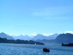 このホテルは一夜だけのため、スーツケースを整理後、午前7時半にバゲージアウトし、8:15にチェックアウトし早速スイス探訪をスタート。朝の散歩のときは薄暗かったが、出発の頃には運良く空は雲ひとつなく真っ青の快晴。