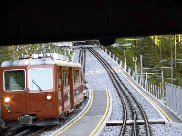 レールが歯車タイプのアブト式登山電車で08:20発のゴルナクラート行きに乗り約50分の旅。
