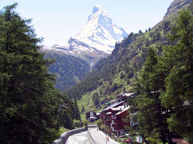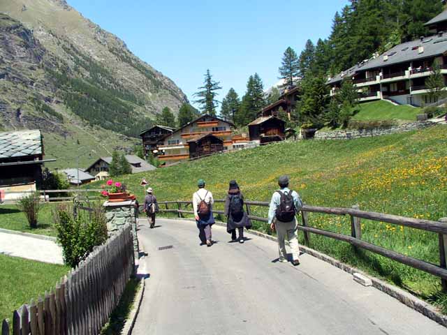 時間が余ったので、ツェルマットの1駅前の駅で下車し、ホテルまでハイキング。途中マッターホルンの美しく見えるカフェテラスでシトロン(炭酸水)を飲み談笑。ホテルに戻ったのは午後3時前。今日も野に咲く花々(雑草)をたくさん見ることが出来た。