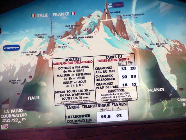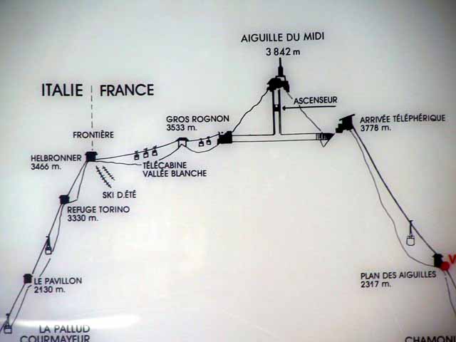 クールマイヨールより真下に落ちるロープウェィを降りたらそこはシャモニーで、国はイタリアからフランスに変わっていた。今日はスイスからイタリア経由でフランスまで来たことになる(明日はまたスイスに戻る予定)。