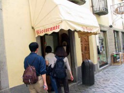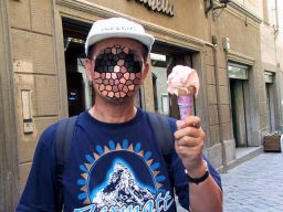 昼食はバス駐車場からだいぶ歩き、パスタ(ペンネ)、とうもろこしと牛肉、甘いいちごカスタードクリーム風。バス停まで歩いていたら、イタリア名物のジェラートを見付け、早速試食。