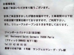 お昼は軽くMACでバーガーセットを食した後、午後は留守番を頼んでいるdachs飼主娘の好きなファッションメーカー『ゴルチェ』パリ本店を訪問するが生憎9月まで改装工事中で土産用買い物は不可であった。
