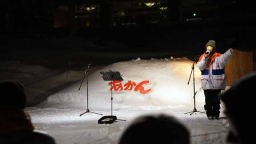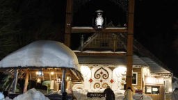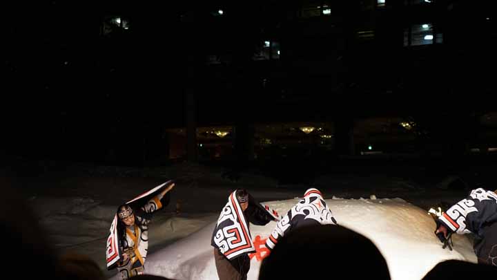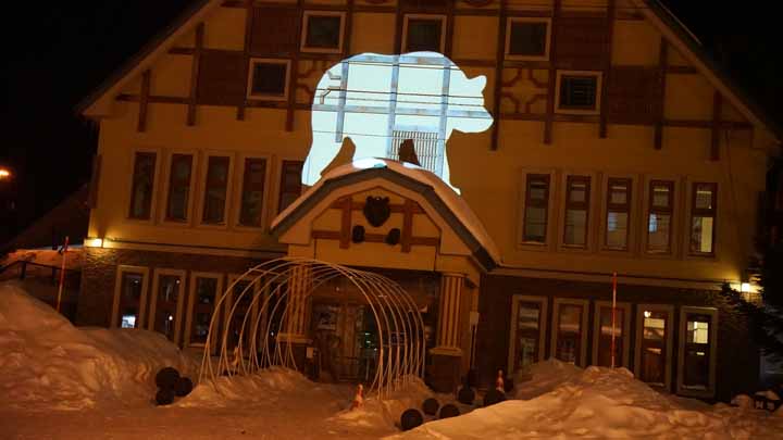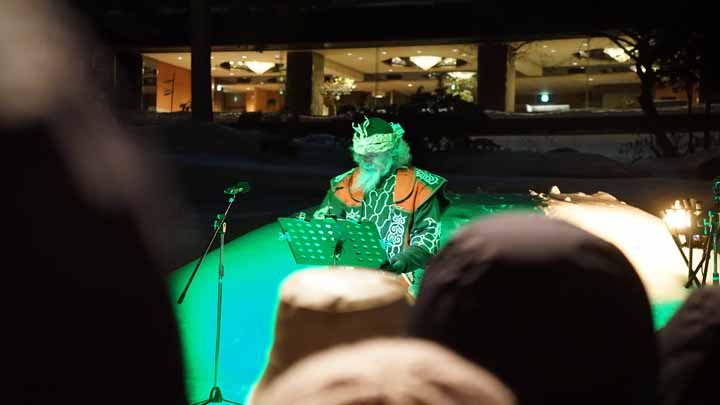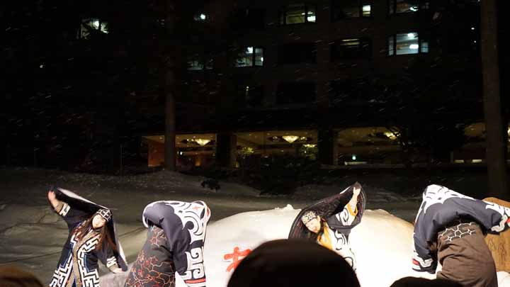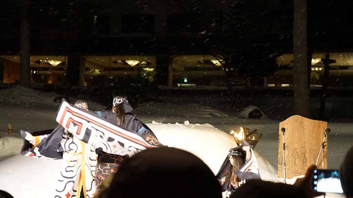 その後、阿寒湖にでてアイヌの方たちのミニ劇を見た後で冬花火を観賞。寒かったがとても美しかった。