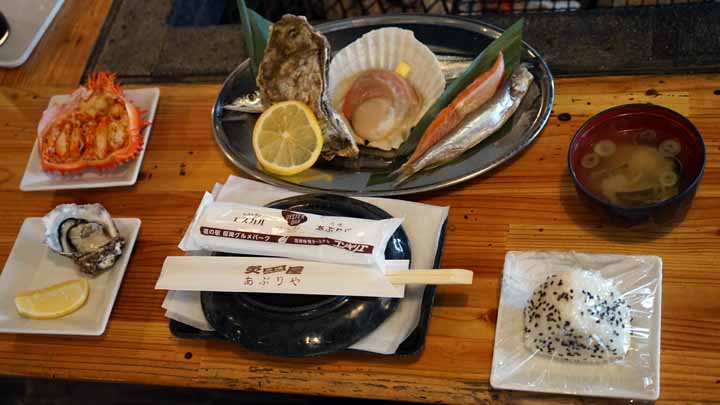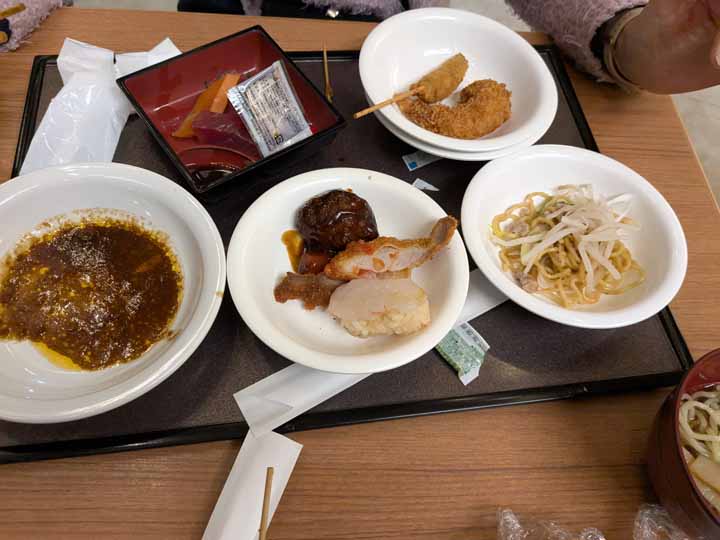 11時50分にバスは出発し、道の駅厚岸グルメパーク「コンキリエ」2階で魚介の炭火焼きが昼食になる。ホタテ、焼き牡蠣、生牡蠣、花咲蟹、鮭ハラス、秋刀魚、柳葉魚を食べた。花咲蟹は蟹ではなくヤドカリの仲間だそうだ。売店では先々週の長崎旅で入手した財呼ぶネズミに加え、シマエナガのテニスラケット吊り下げアクセサリーを買ってきた。午後2時10分に出発した。
