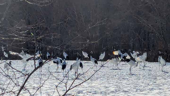 湿原から数分で鶴見台でタンチョウ観賞。1昨年3月に訪れた際は1匹も居なかったタンチョウが100匹以上集団で観れた。たんちょうづるというのは名称的には間違いだそうだ。ソフトクリームもミルクも濃くて美味かった。