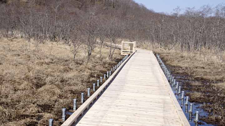 5時の釧路は陽がのぼって眩しいので5時に起床。17階のレストランで朝食。プリンスの朝食はやはり上品で旨い。朝8時半に釧路プリンスホテルを出発し、釧路湿原温根内木道に向う。3日目に漸く日本晴れ。桜の開花は5月下旬とかなり遅い。蝦夷山桜で花より先に歯が出て花色はピンクが濃いそうだ。温根沼ビジターセンターには9時10分到着。1時間かけて、温根沼木道をゆっくりと散歩。スゲの育成時に盛りあがった形が坊主頭に似ているとされるやちぼうずが無数にあった。万歩計は約3000歩強だった。