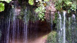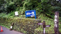 - 湯川の水源にある。高さ3m、幅70mの岩肌より数百条の地下水が白糸のごとくに落ちる美しい滝。