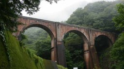 - 煉瓦造り4連アーチ式の鉄道橋。国重要文化財で、めがね橋の愛称で親しまれる。