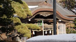 食事を終わり外にでてみると雪が降りだしてきた。少し歩いて温泉の神様がいるという湯倉神社に参拝しご朱印を貰ってきた。