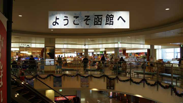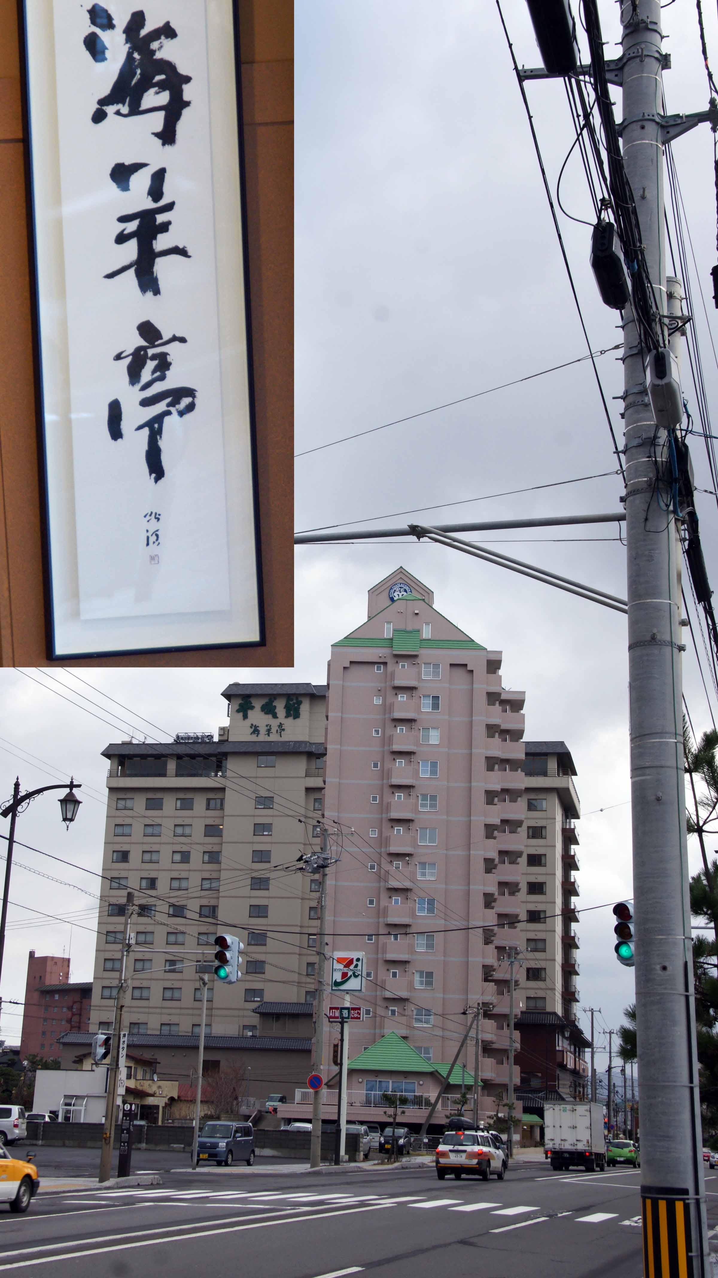 飛行機は満席で離陸が予定より10分ほど遅れたが無事に北海道の大地に降り立つことができた。丁度お昼どきだったが函館空港はメシ処が3階に1ケ所しかなかったので空港からバス8分の今回の宿『平成館海羊亭』に荷物だけを預け、湯の川の温泉街を歩く。