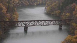 次に見た名もないスノーシェッド(トンネル)内から第三橋梁を見た。紅葉も美しかった。(11:30)