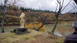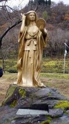 田中角栄氏が建てたという六十里越街道記念碑からも田子倉湖を臨めた。国道252号線沿いは只見線も並行しており見どころが多くて楽しめる。道の駅「いりひろせ」でこしひかりのおむすびを夕食までの腹の虫養いに食べた。雨が小やみになり、乙女像と池が美しかったので、昼めしは池を見ながらおむすび。具ははいってなかったが、やはり味わい深い高級米こしひかりだった。