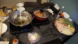6時半に宿に戻って早速調理の準備。1つの鍋で蟹をボイルし、もう一つの鍋で地元豚メインのしゃぶしゃぶをゴマダレと醤油だしで食べた。ビール、焼酎、ウィスキー、日本酒とおつまみで午後9時前まで騒がしくも楽しい宴会ができた。
