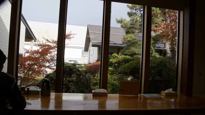 7時、ホテルから3分の五色沼探勝路に4名であるきはじめる。外気温が2℃と低い中を柳沼、青沼、るり沼、弁天沼までだけだったが空気も澄んで、昨夜の雨で湿った散策路を踏みしめながら沼と周囲の山々を愛でながら1時間ほど巡った。8時に戻って、昨日買ってきたみしらず柿を剥いて食べたが、昨日食べたそれよりも甘くて美味かった。