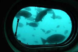 ホテルを10時に出発後、勝浦から館山に戻り、天津小湊に戻って日蓮聖人の生誕を由緒に持つ誕生寺へ。日蓮宗信徒の手厚い気持ちを感じる大きなお寺だ。本堂横で朱印帖に記帳してもらい、あとは勝浦海中公園にある海中展望台から魚群を鑑賞。