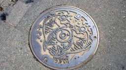 東伊豆町稲取温泉。泊まったホテルはモチロン窓下に海が有り、窓を閉めても打ち寄せる波の音が聞こえる。ヤハリ海の大きさと波は男性的で浪漫を感じてしまう。昨夜は10時過ぎに酔いの強さもあり、すぐに寝てしまったが、5時半からは別のお風呂へ全員が連れ立って入湯。大浴場が5階と3階にあるのだが、男女が入れ替わるので、両方の温泉を楽しめる。朝食後、河岸を散歩して、東伊豆町らしいマンホールを発見できた。