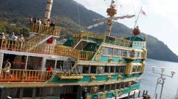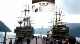 熱海から伊豆スカイラインに沿って十国峠に11時前に着いたが、生憎薄曇り。その後芦ノ湖に降り、11:15に海賊船に乗って約1時間湖上を遊覧した。