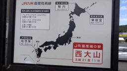 次に向かったのは池田湖。この辺りから開聞岳が美しい姿を見せ始める。薩摩富士と謂われる由縁は美しいコニーデ式の900メートル級の山である。次の見学地はJR日本最南端の駅「西大山駅」。幸せの黄色い郵便ポストが傍にあった。