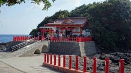 射楯兵主(いたてつわものぬし)神社(釜蓋〈かまふた〉神社)は、南九州市にある入り江の岩礁が突き出た所に鎮座する。釜蓋神社の御祭神はスサノオノミコト。釜の蓋を頭にのせ、鳥居から拝殿まで落とさずに行くことができれば願いが叶うとも言われています。