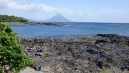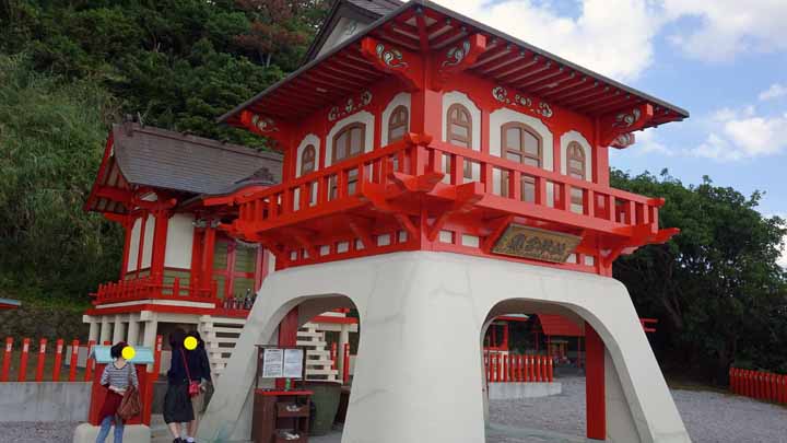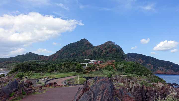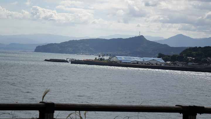 湯上がりに長崎鼻に行った。しかし、入口にあった竜宮神社の安っぽい赤色の彩色にガッカリした。開聞岳はどこから見ても美しい。