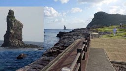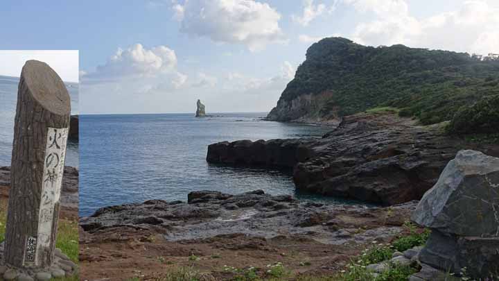 立神岩 (タテガミイワ)は、枕崎市火之神公園の沖300mに海中から突出している高さ42m奇岩。