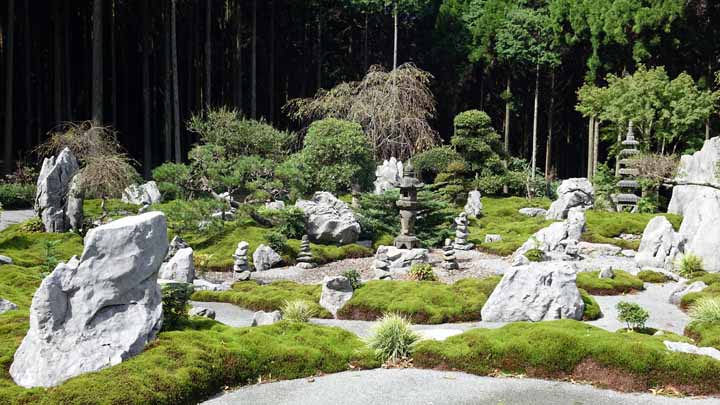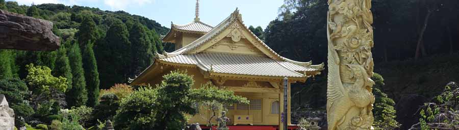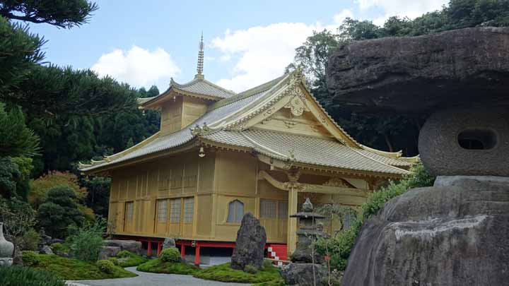 不動山青隆寺は 1990年開山。「真言密教の教義を実践する修禅の道場」「安らぎと癒しの寺」として、標高300メートルの山中に伽藍が配されております。境内に広がる庭園は、35トンの巨石をはじめとする多くの石や数百年前の燈籠が配され、それぞれの場所で色々な表情を見せてくれます。極めて珍しい鍾乳石庭園もあります。 金色堂が印象深い。https://www.seiryuji.org/
