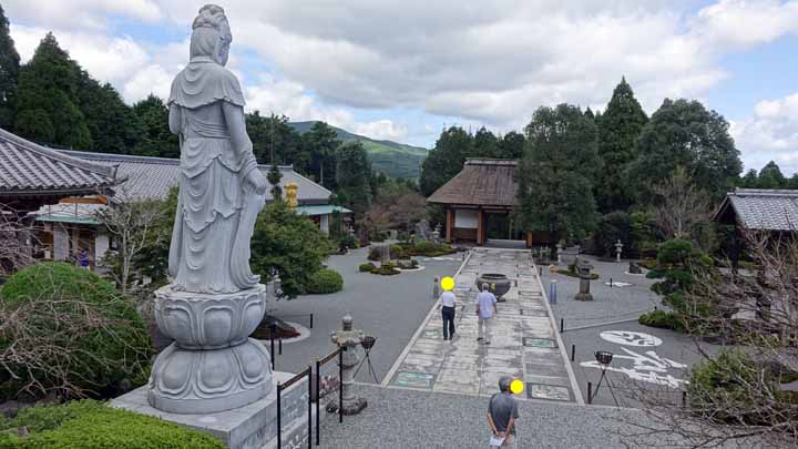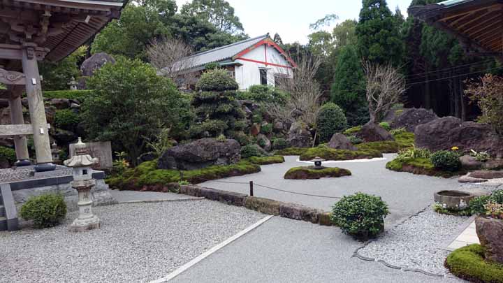 午前9時丁度に日産NOTESに4人で乗り、まずは道の駅いぶすきの案内板からここから4キロ離れた真言宗のお寺清龍寺を訪れた。立派なお寺で修行僧が各堂内を丁寧に説明いただいた。中でも、金色堂と枯山水はとても崇高で美しかった。