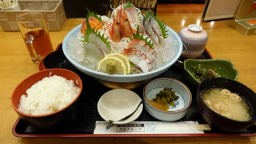 小倉駅近くの商店街で お刺身御膳 |