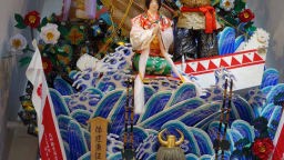 櫛田神社を参拝しここでも朱印を戴いた。この神社は7月に開催される博多祇園山笠のスタート地でもあり、テレビ局からの綺麗な山笠が大きく門前に展示してあった。