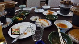 しかしながら、最高に感激したのは夕食。それなりの基本セット以外に食事がビュッフェスタイルも追加でき、しかもソフトドリンクだけではなく、お酒も飲み放題だそうだ。2か月間飲まなかったお酒を飲みたい欲望は今日、氾濫した。ビール焼酎などを何度もお代わりして大満足だった。隣で食事していた熊本の方に聞いてみると、九州でも旅館で飲み放題食べ放題を実践しているのは珍しい。良いホテルを選ん良かった。明日は倉の町を散策して別府に向かう。