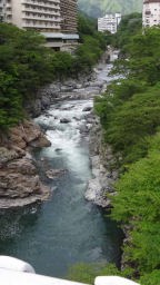 2時半に宿に到着してしまった。チェックインは午後3時なので、鬼怒川近辺をラミウリと散歩してきた。平日なのか、温泉街は閑散としている。鬼怒川はいわゆる清流に近く、水の色は深緑でたいへん綺麗だった。遠くの山並みも稜線が美しい。