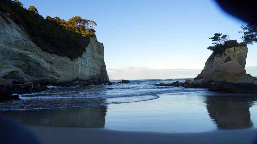 - 切り立った海食崖に挟まれた二つの入江をもつ景勝地
