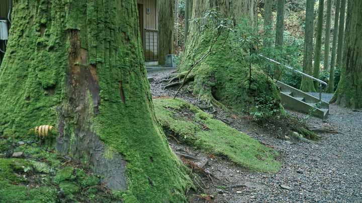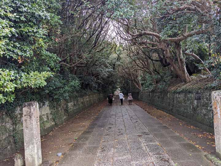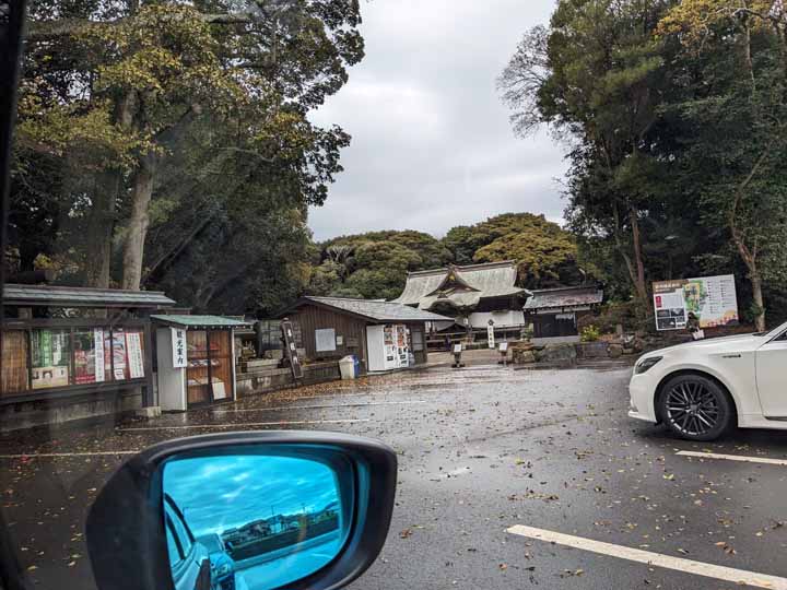 10時半に離れて、10分ほどで酒列磯前神社に到着。ここは先ほど参拝した大洗磯前神社の兄弟神社で、見どころは参道の自然林(樹叢)。50mほどだが広葉樹の壮大さが壮観であった。この神社のご朱印は書きおきだったが、近くに朱印帖を貼れる場所があり、そこには糊PITが置いてあった。